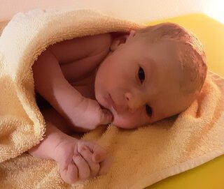 Das Einverständnis der Mutter bzw. des Vaters vorausgesetzt werden diese Bilder nach der Geburt von Hebammen im Kreißsaal aufgenommen. Sie zeigen einen Einblick in die ersten Stunden des Babys. Selbtverständlich achten wir auch hier auf die enge Nähe zwischen Baby und Eltern ("Bonding").